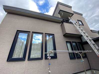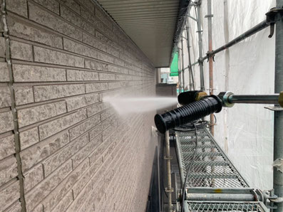 ほこりや泥汚れ、カビやコケ、排気ガスや油汚れや チョーキングなどが付着したままだと塗膜剥がれや 耐久年数に影響が出るためしっかりと隅々まで 洗浄します。 |